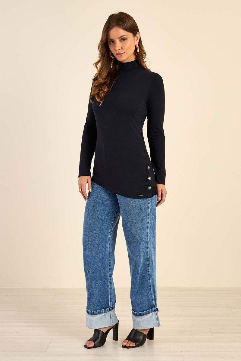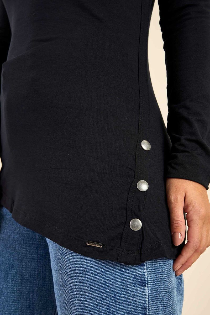 Blusa Feminina Assimétrica Com Botões Marialícia Preto REF: 183868-7001