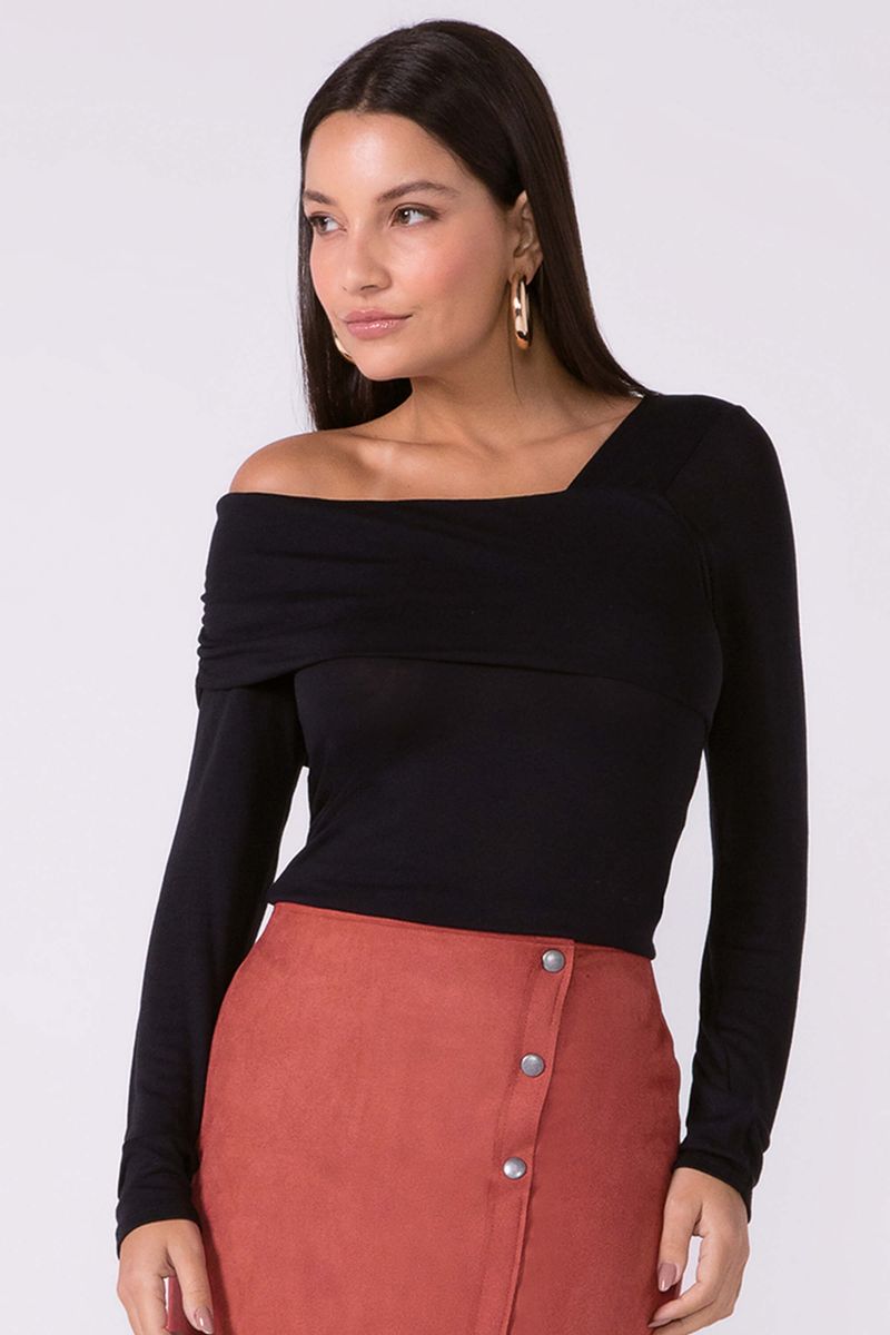 Blusa Feminina Ombro Só Com Franzido Marialícia Preto REF: 183869-7001
