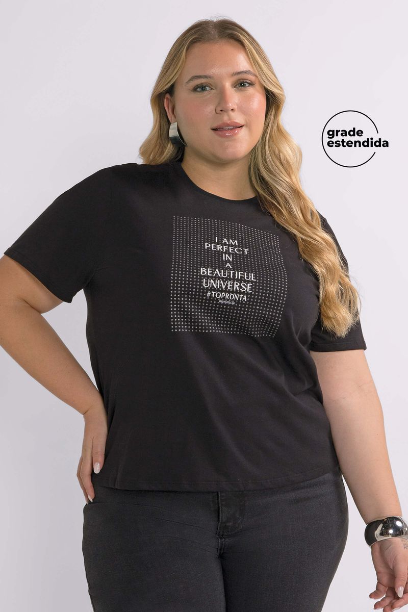 AdultoFemininoBlusas FemininoT-Shirt Feminina Glitter Marialícia Preto
