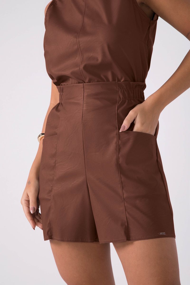 Short Feminino Cintura Alta Marialícia Marrom REF: 183881-8014