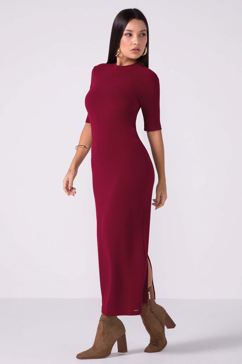 AdultoFemininoVestidos FemininoVestido Midi Feminino Canelado Com Fenda Marialícia Vermelho