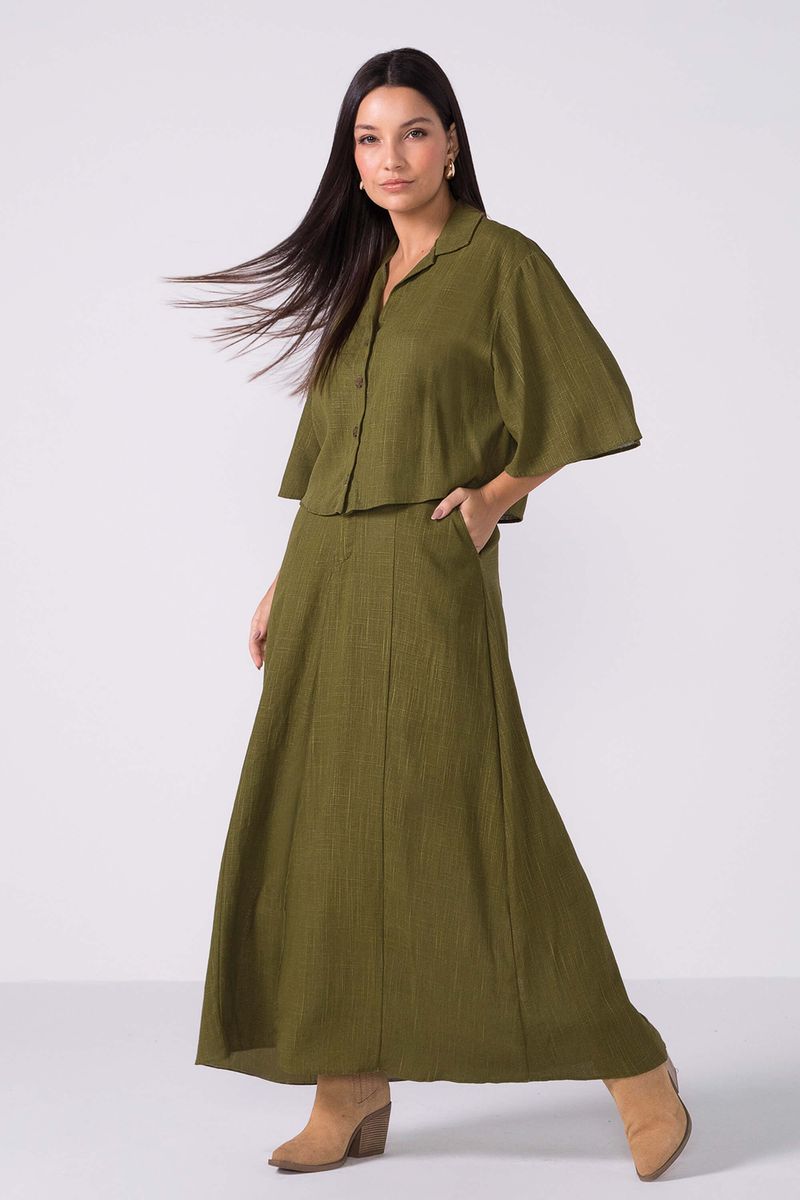 Saia Longa Feminina Viscolinho Marialícia Verde REF: 183897-5109