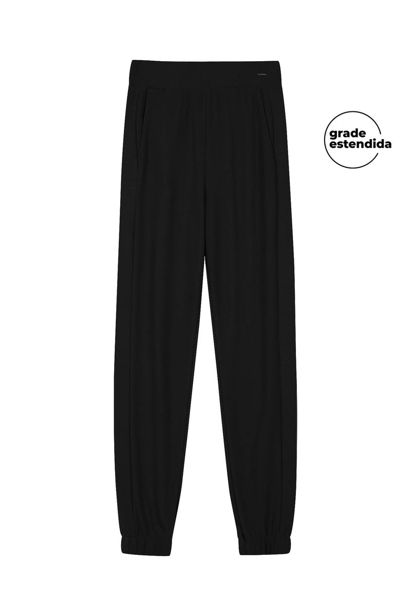 Calça Jogger Feminina Canelada Com Bolsos Marialícia Preto REF: 183906-7001