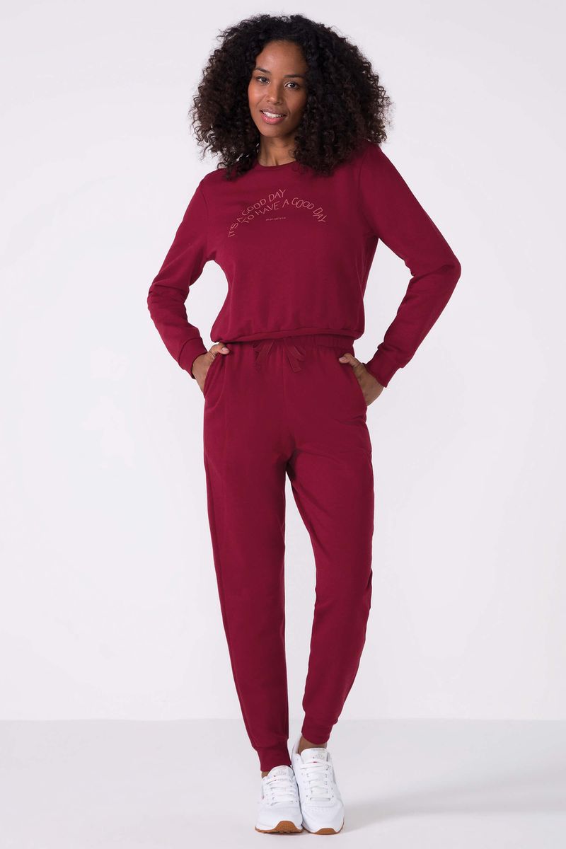 Conjunto Longo Feminino Moletom Com Frase Marialícia Vermelho REF: 183915-4432