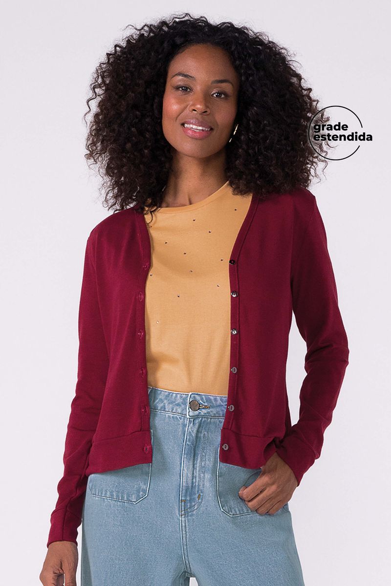 AdultoFemininoCasacos e Jaquetas FemininoCardigan Feminino Malha Tricô Clássico Marialícia Vermelho