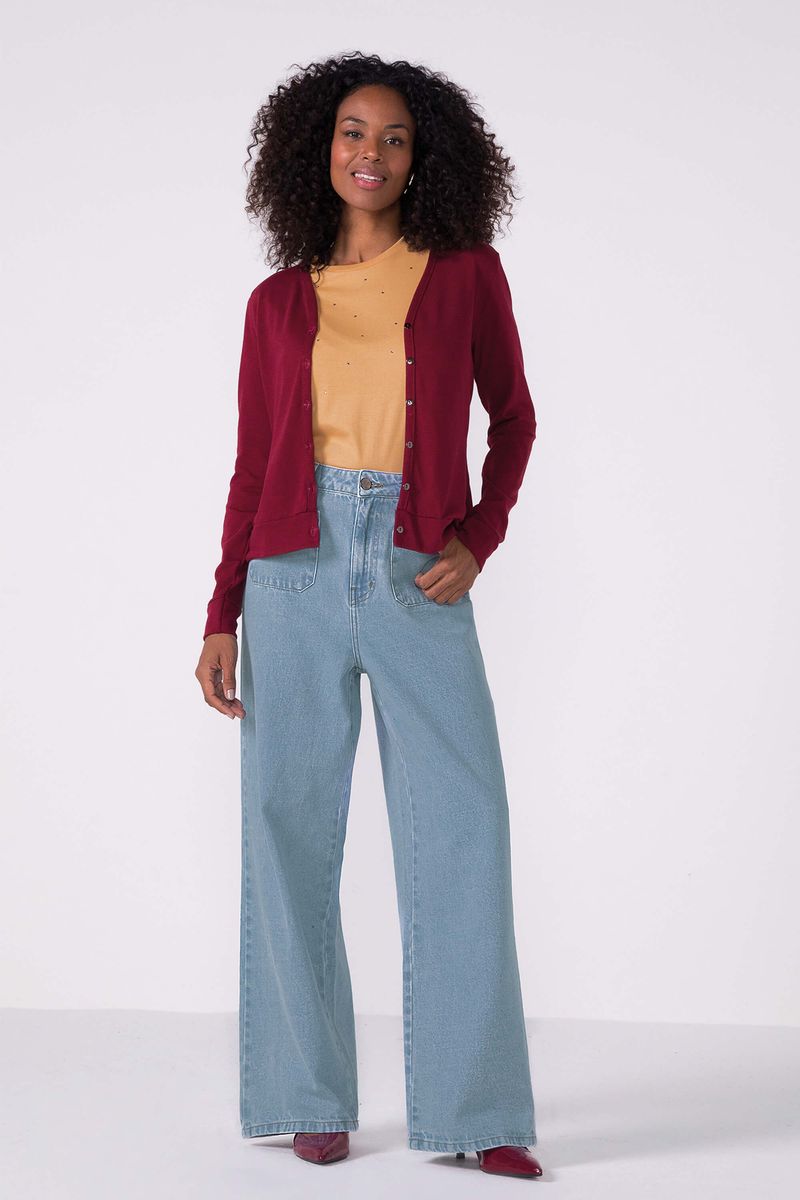 Cardigan Feminino Malha Tricô Clássico Marialícia Vermelho REF: 183936-4432