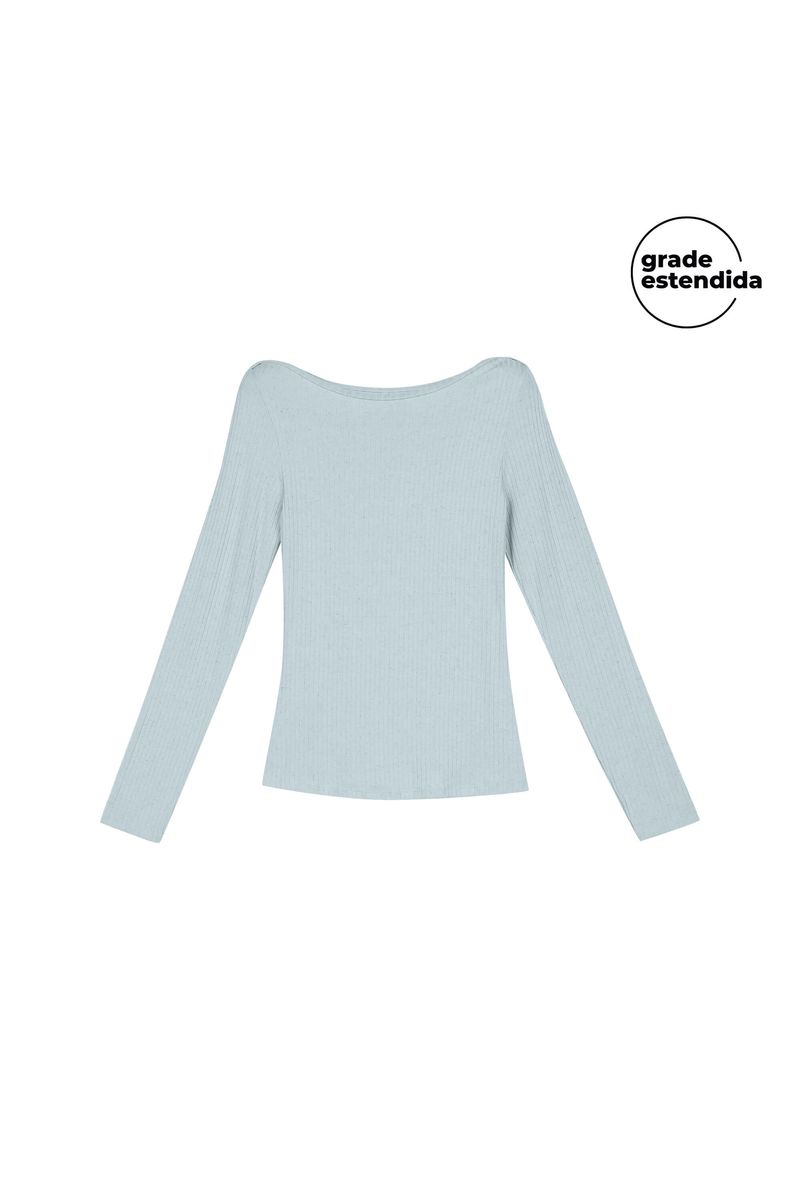Blusa Feminina Comfy Manga Longa Canelada Marialícia Azul REF: 183947-6112