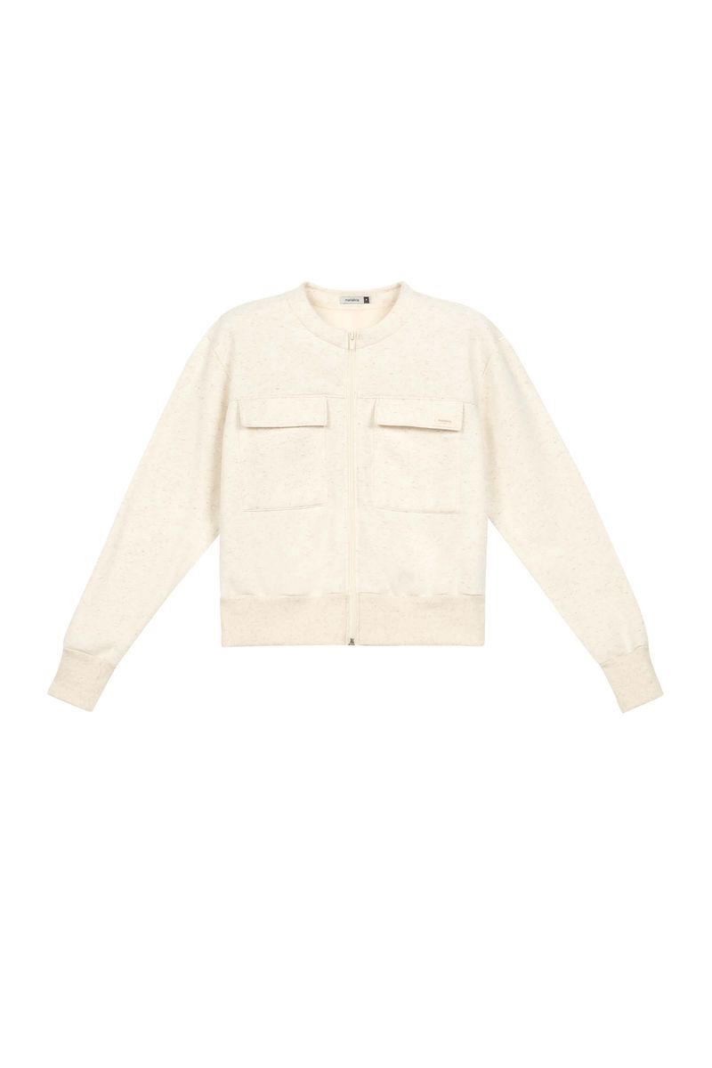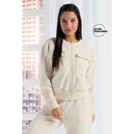 Jaqueta Feminina Comfy Moletom Bolsos Frontais Marialícia Bege REF: 183953-2037