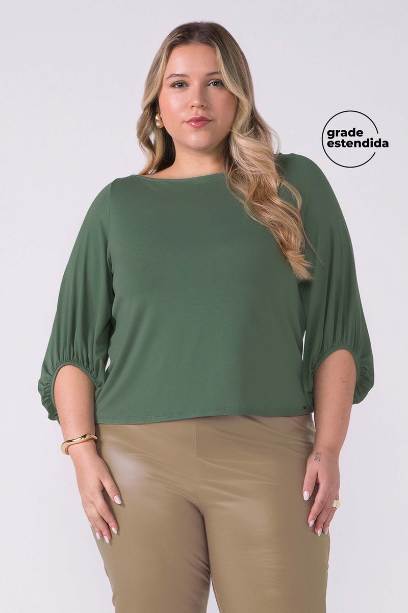 AdultoFemininoBlusas FemininoBlusa Feminina Manga Bufante Lisa Marialícia Verde