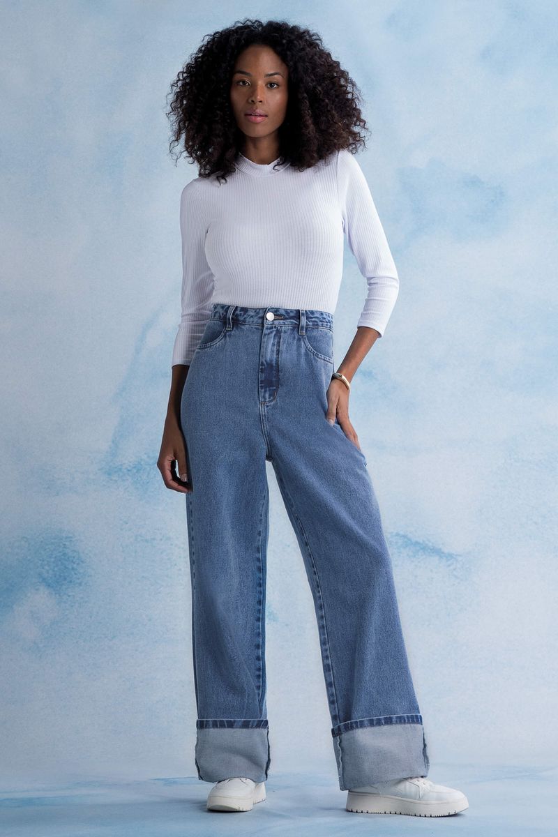 AdultoFemininoCalças FemininoCalça Feminina Jeans Wide Leg Marialícia Azul