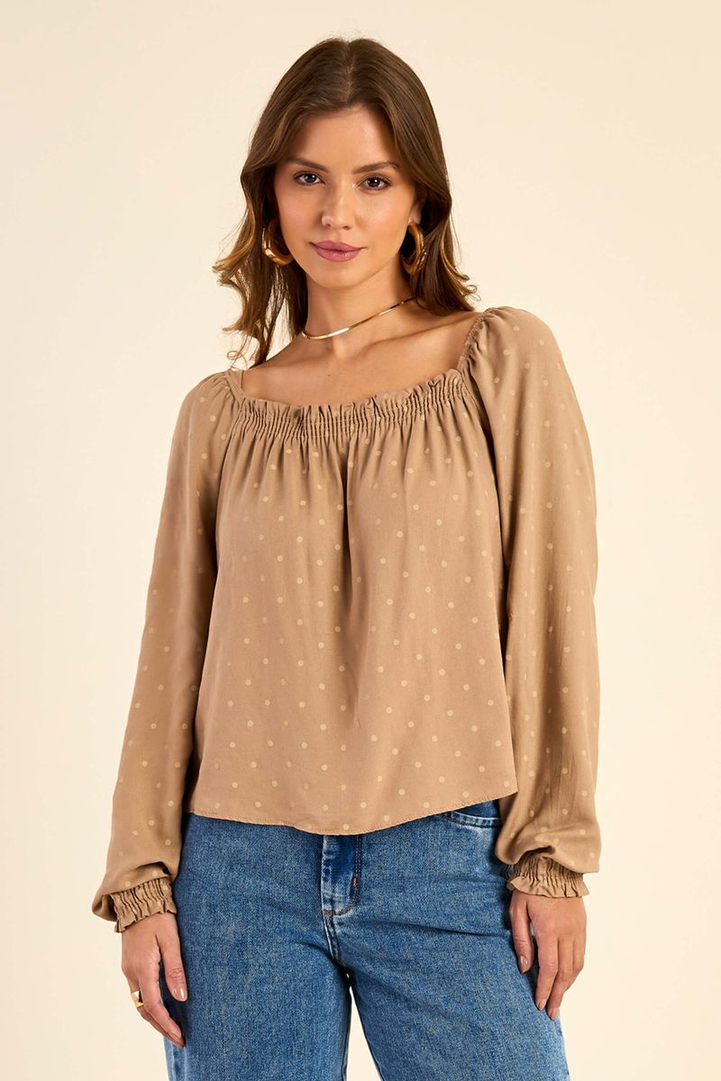 Blusa Feminina Ciganinha Manga Longa Marialícia Marrom REF: 183993-8014