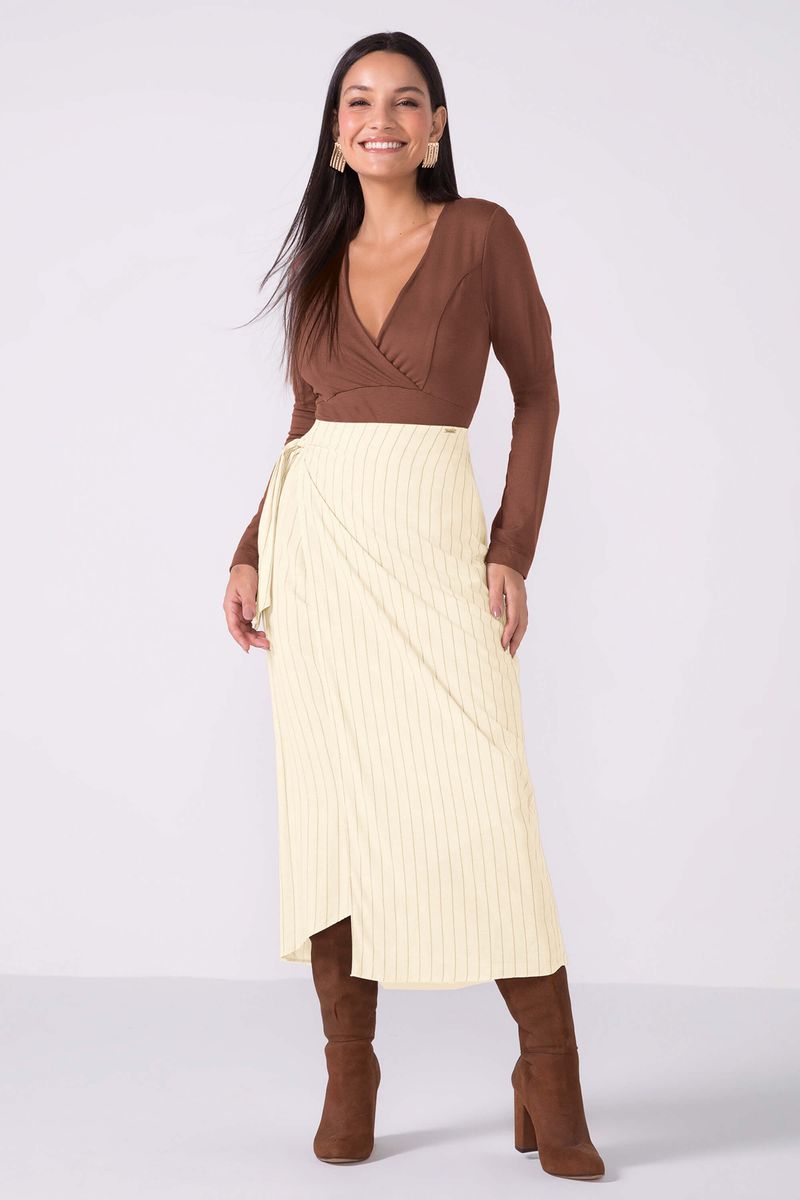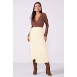 Saia Feminina Midi Transpassada Listrada Marialícia Bege REF: 184000-2037