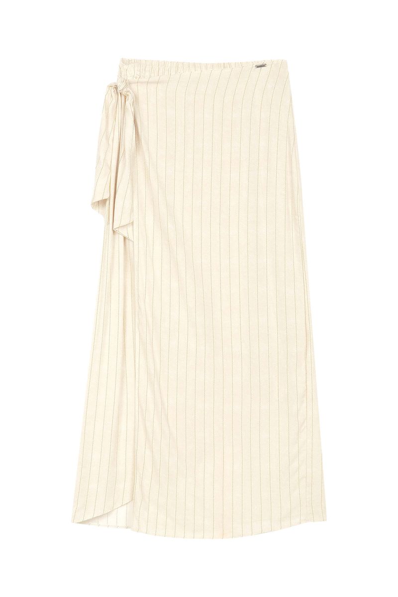 AdultoFemininoSaias FemininoSaia Feminina Midi Transpassada Listrada Marialícia Bege