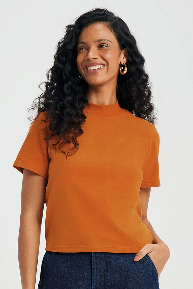 AdultoFemininoBlusas FemininoBlusa Feminina Gola Alta Peletizada Marialícia Laranja
