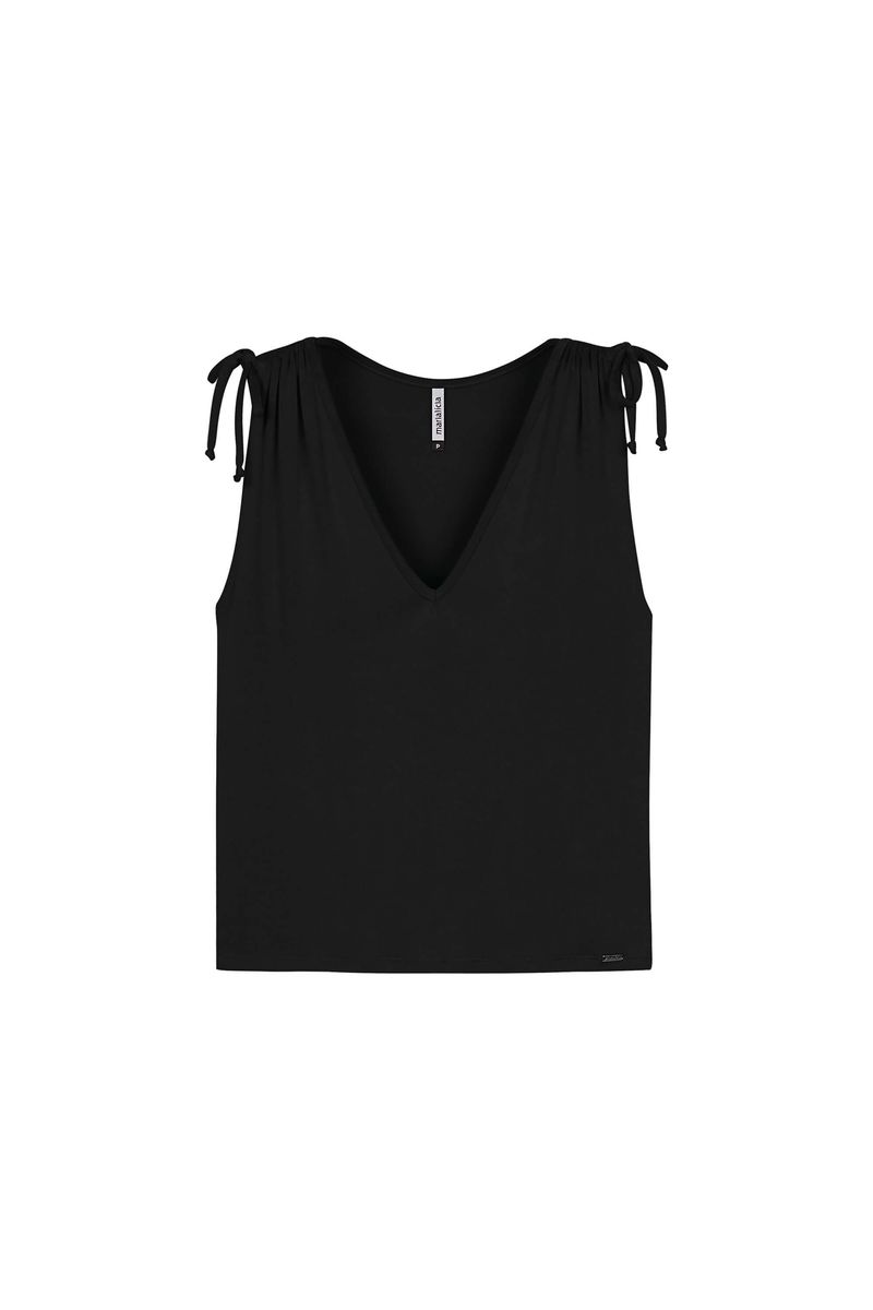 Blusa Feminina Alças Com Amarração Marialícia Preto REF: 184013-7001