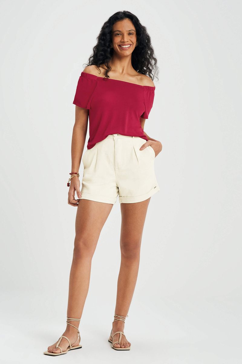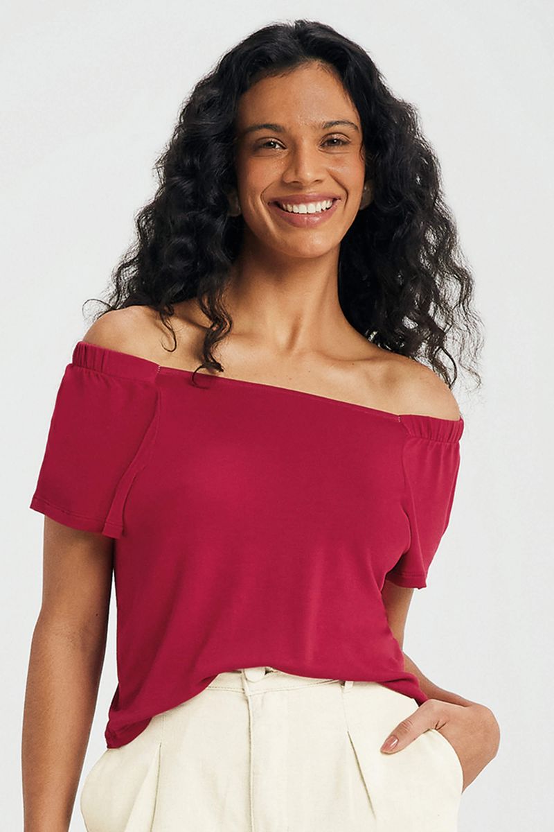 AdultoFemininoBlusas FemininoBlusa Feminina Ombro a Ombro Marialícia Vermelho