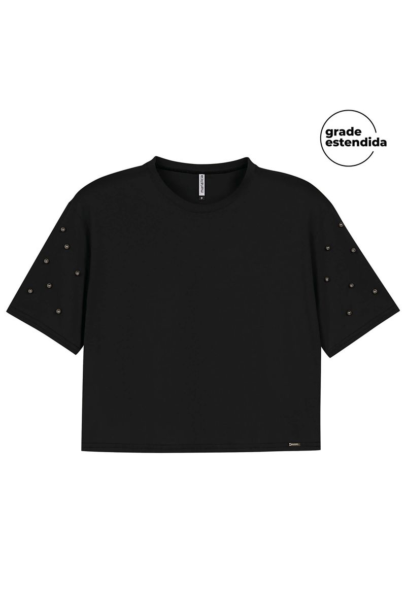 Blusa Feminina Aplicações de Pérolas Marialícia Preto REF: 184022-7001