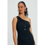 Blusa Feminina Assimétrica Com Botões Marialícia Preto REF: 184025-7001