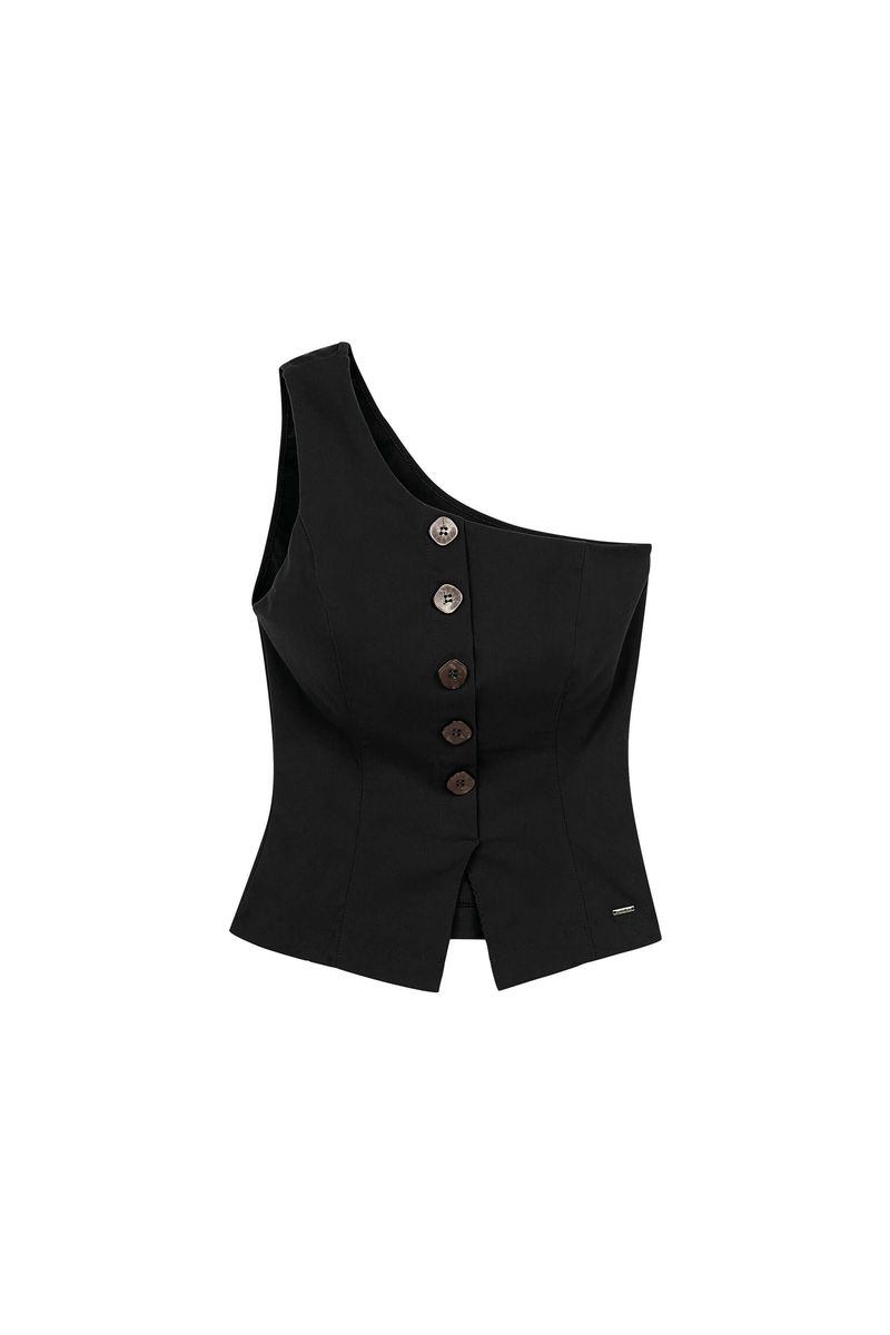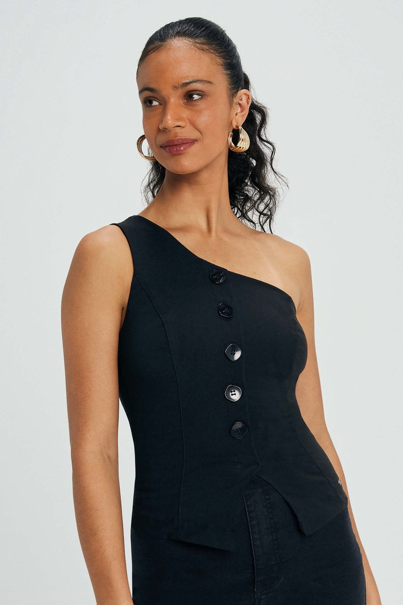AdultoFemininoBlusas FemininoBlusa Feminina Assimétrica Com Botões Marialícia Preto