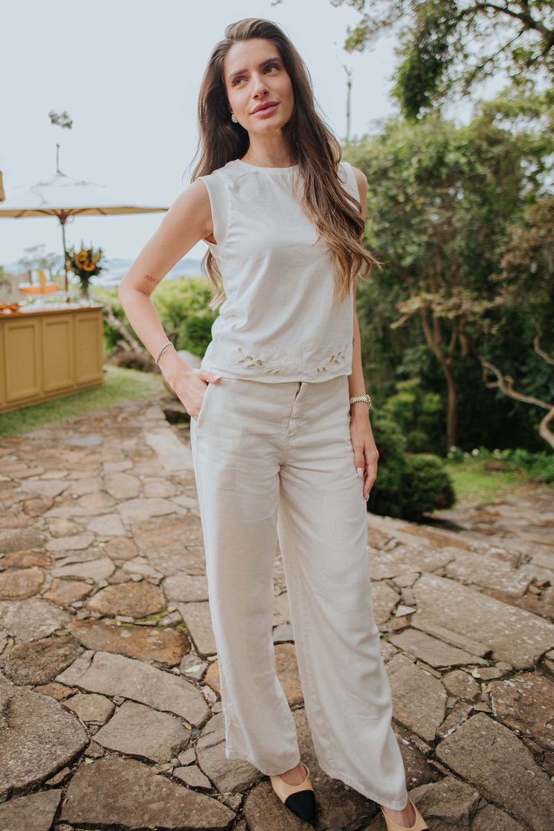 AdultoFemininoBlusas FemininoBlusa Feminina Curta Com Bordado Vazado Marialícia Bege