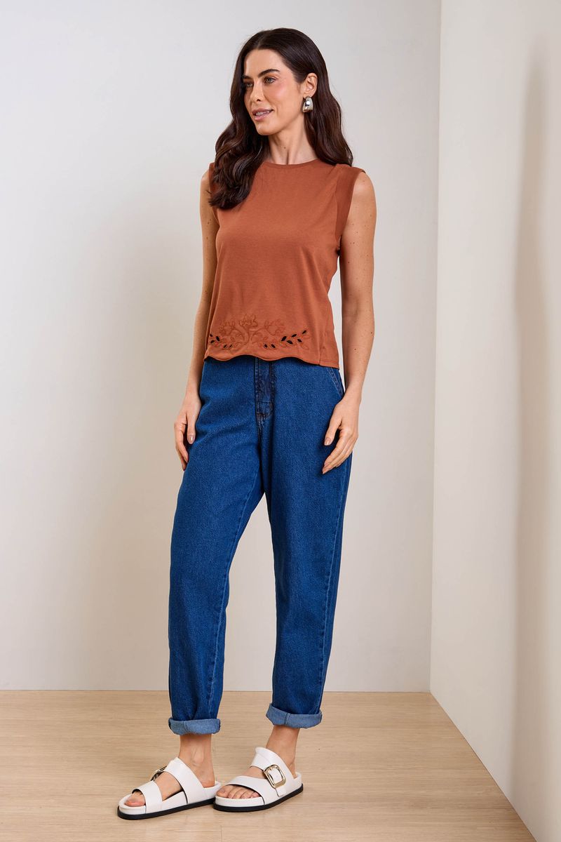 AdultoFemininoBlusas FemininoBlusa Feminina Curta Com Bordado Vazado Marialícia Marrom