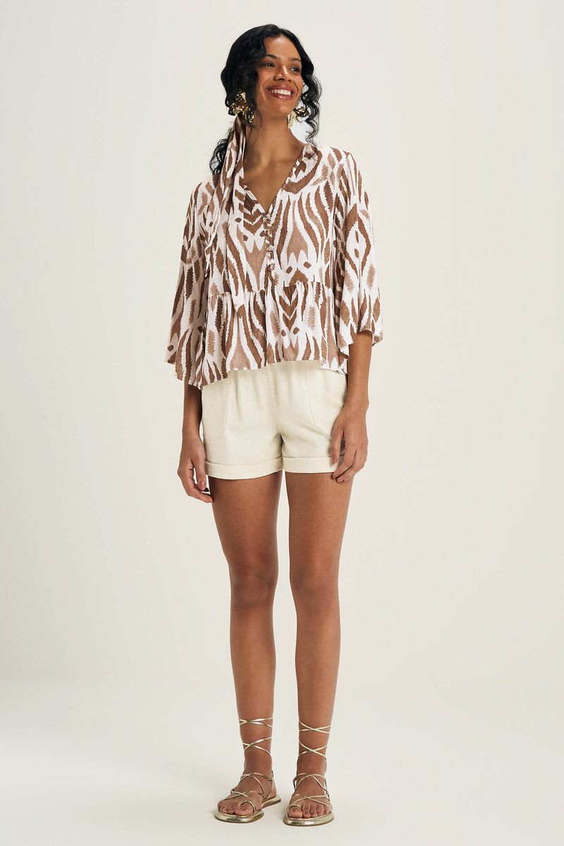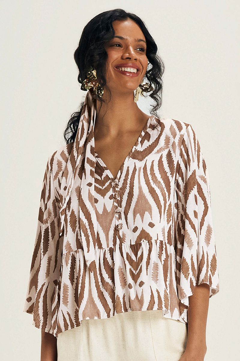 AdultoFemininoBlusas FemininoBlusa Feminina Ampla Estampa Digital Marialícia Bege