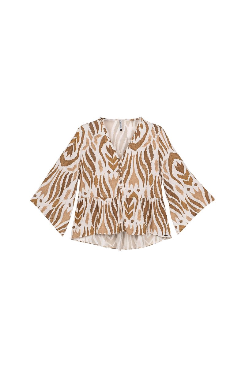 Blusa Feminina Ampla Estampa Digital Marialícia Bege REF: 184028-2039