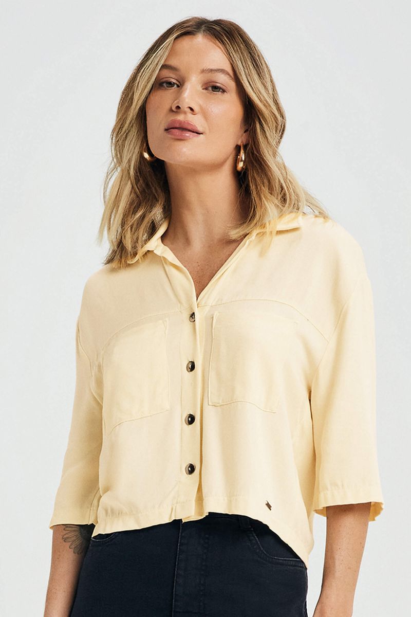 AdultoFemininoBlusas FemininoBlusa Feminina Viscose Sarjada Com Bolsos Marialícia Amarelo