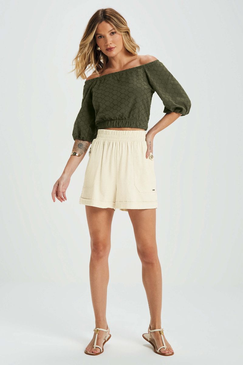 Blusa Feminina Cropped Ciganinha Marialícia Verde REF: 184040-5161