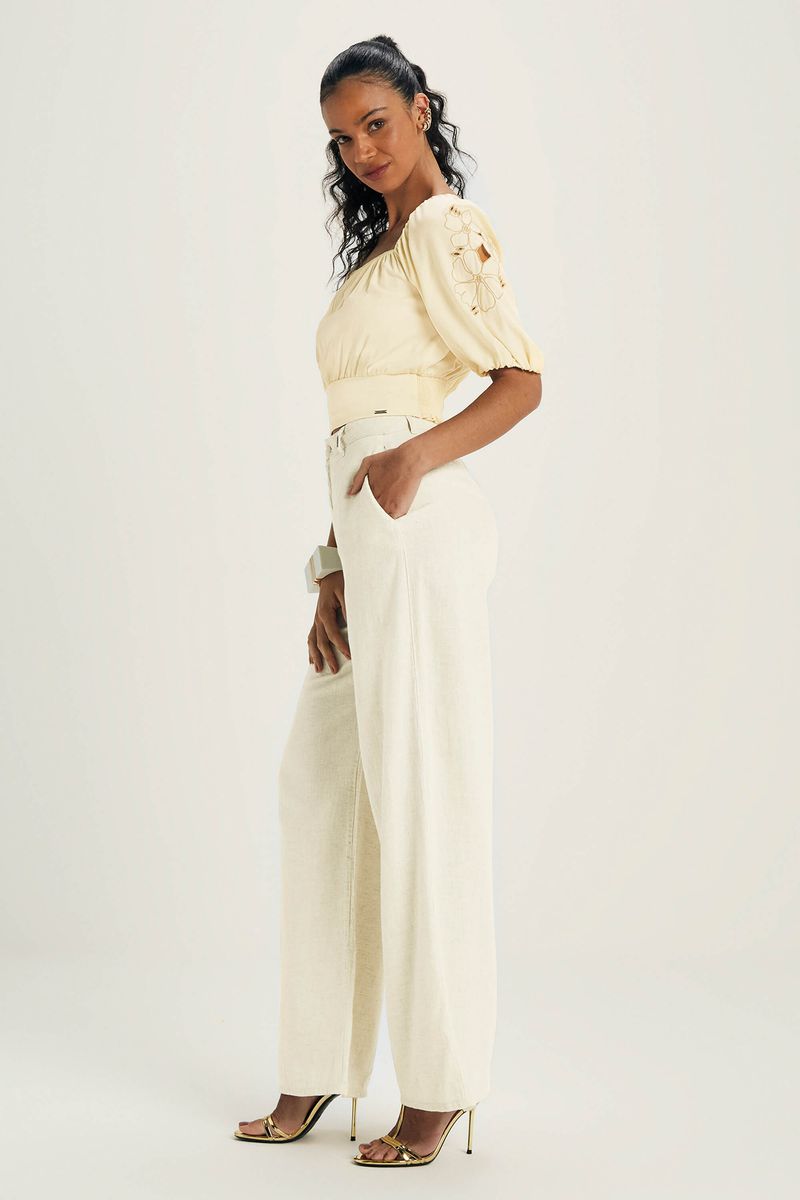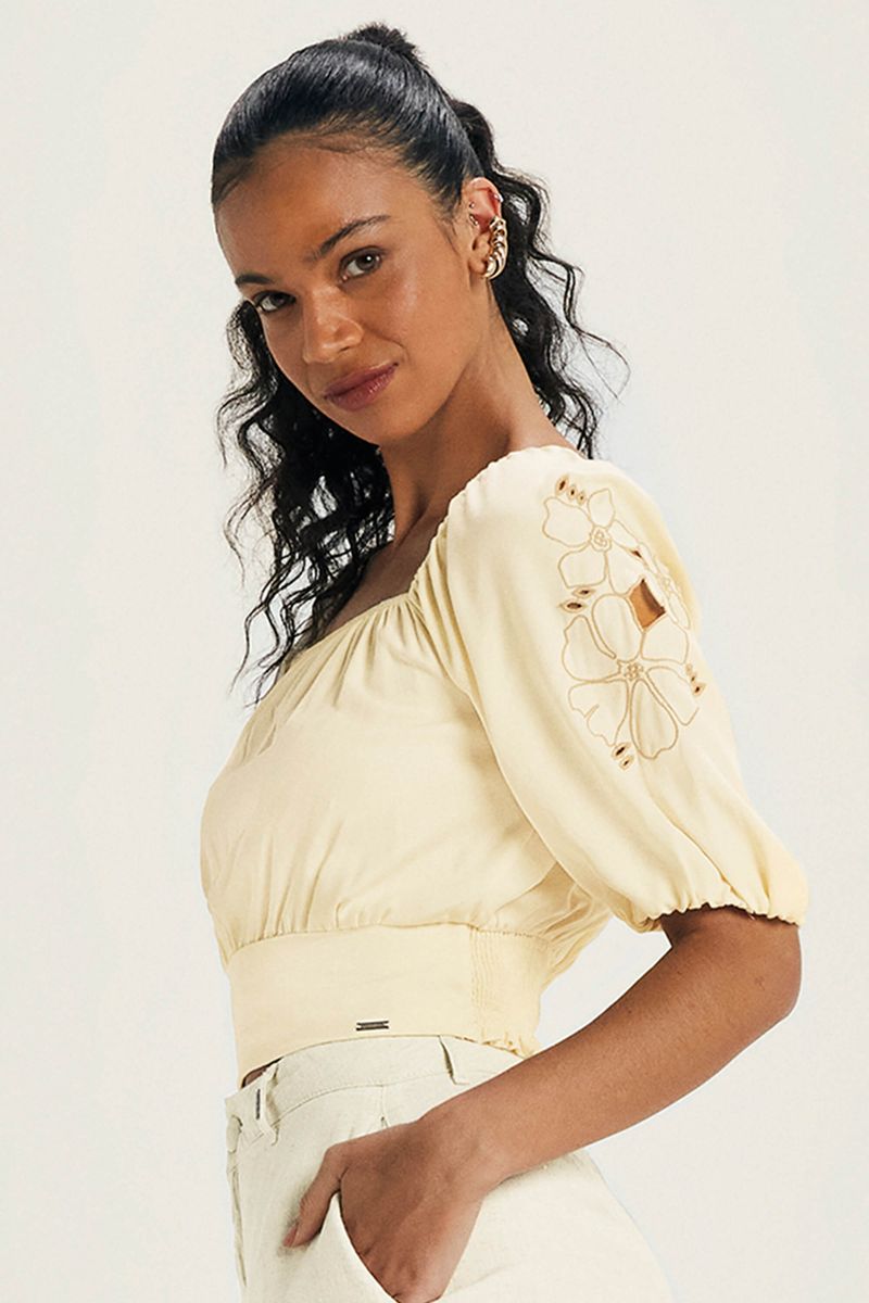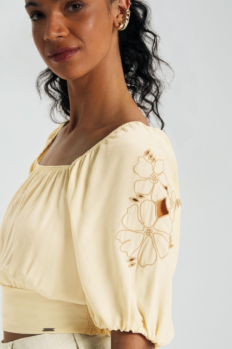 Blusa Feminina Cropped Bordado Vazado Marialícia Amarelo REF: 184042-2029