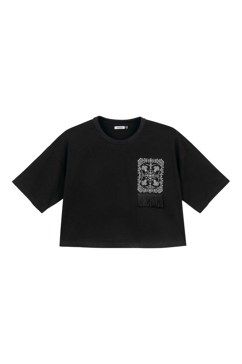 Blusa Feminina Estampa Com Franja Marialícia Preto REF: 184043-7001