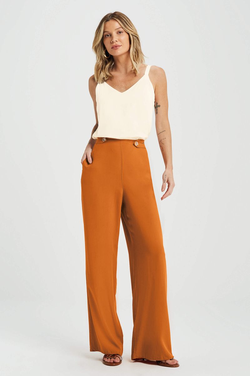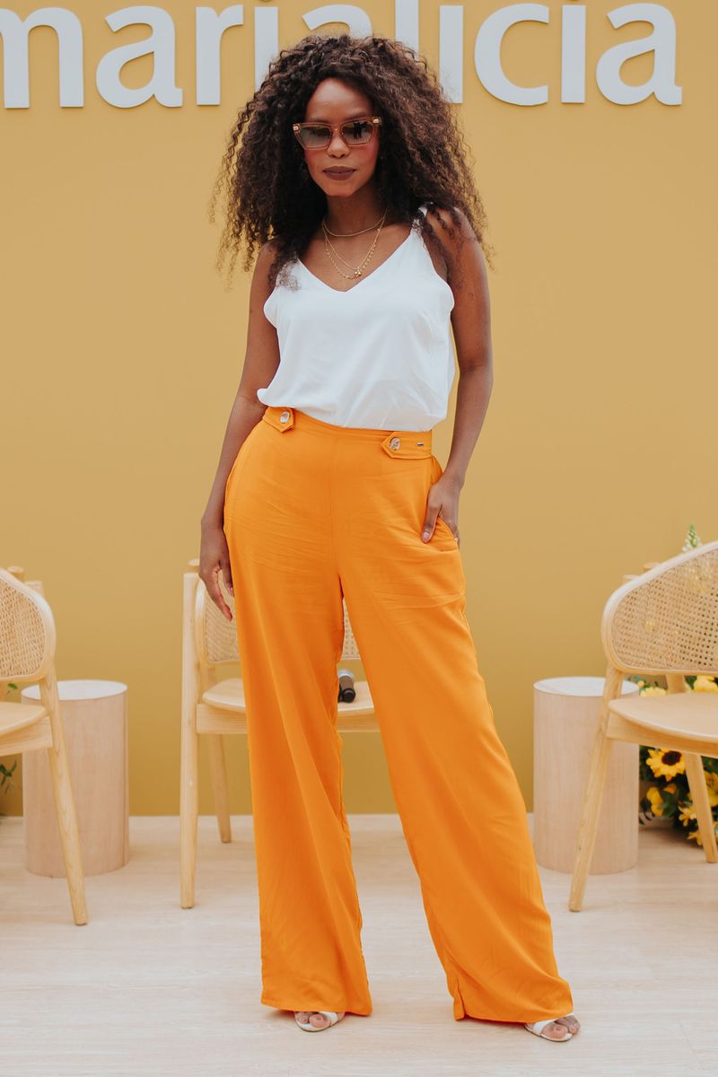 AdultoFemininoCalças FemininoCalça Feminina Pantalona Com Botões Marialícia Laranja