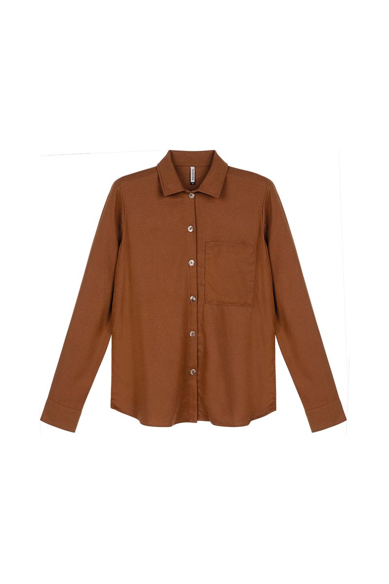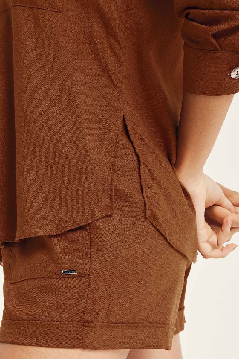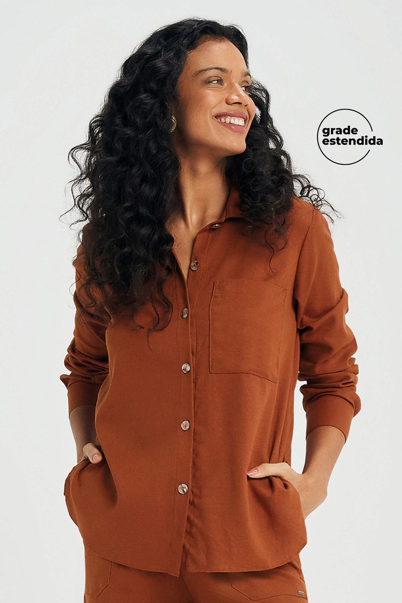 Camisa Feminina Manga Longa Linho Marialícia Marrom REF: 184054-8045