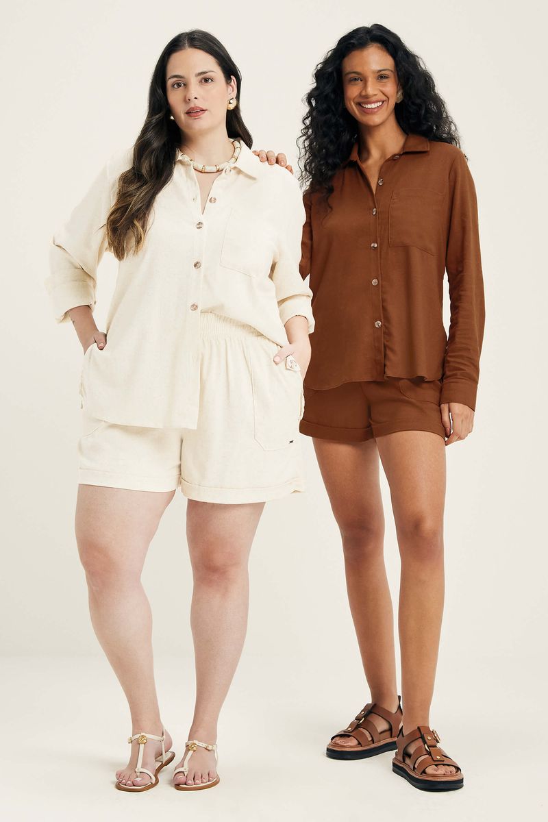 AdultoFemininoCamisas FemininoCamisa Feminina Manga Longa Linho Marialícia Marrom