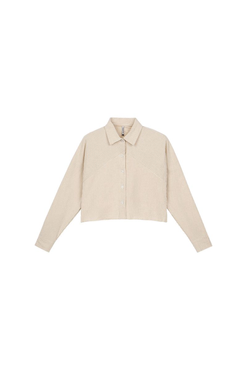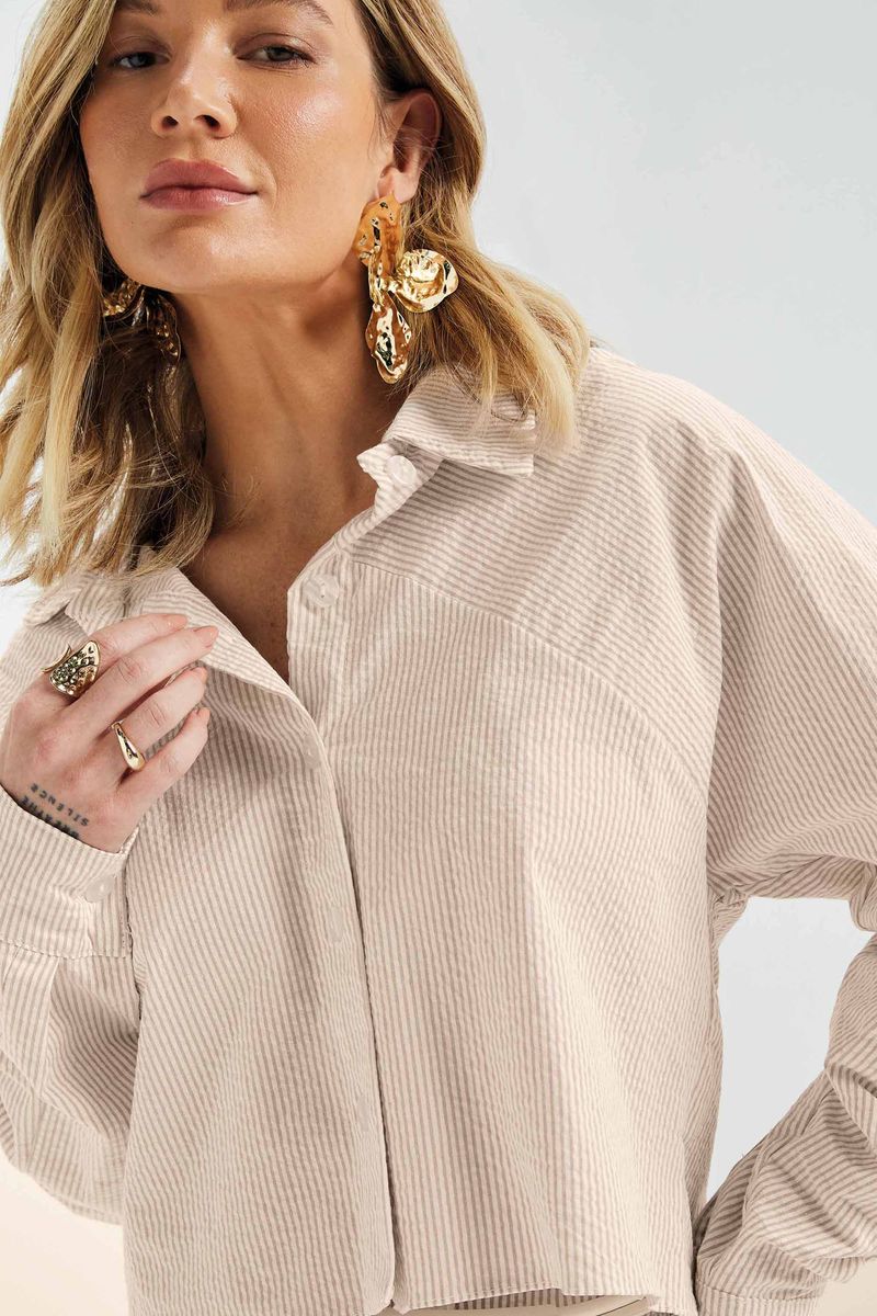 AdultoFemininoCamisas FemininoCamisa Feminina Tricoline Fio Tinto Marialícia Bege