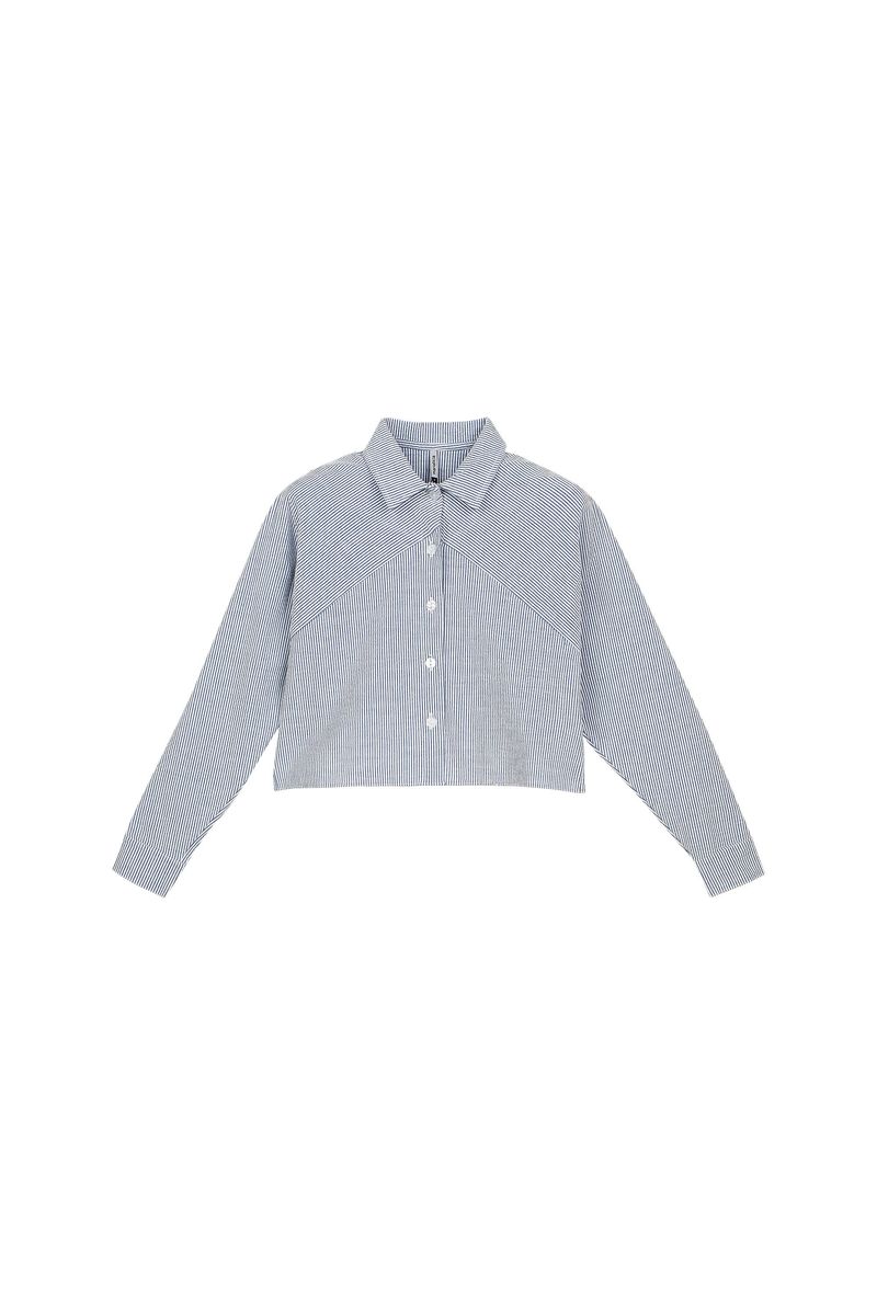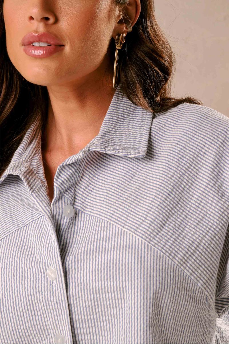 Camisa Feminina Tricoline Fio Tinto Marialícia Azul REF: 184056-6025