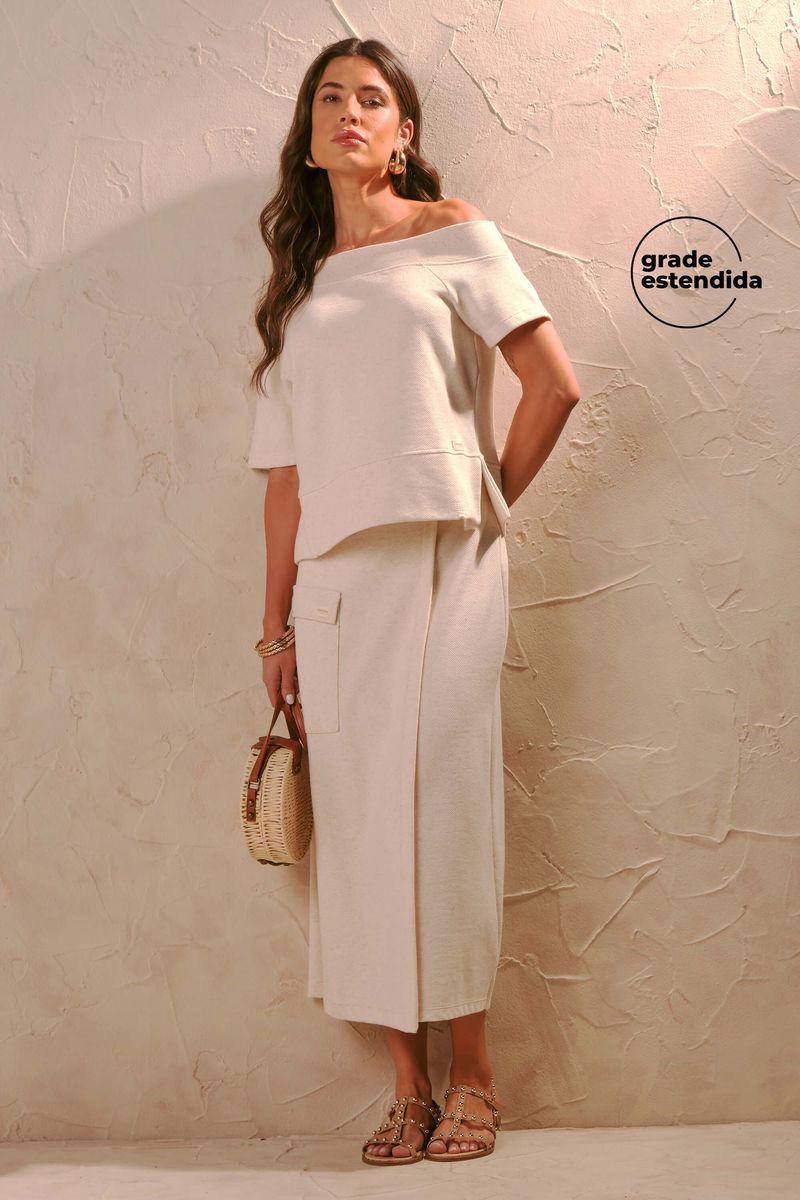 Saia Feminina Midi Comfy em Linho Marialícia Bege REF: 184078-2037
