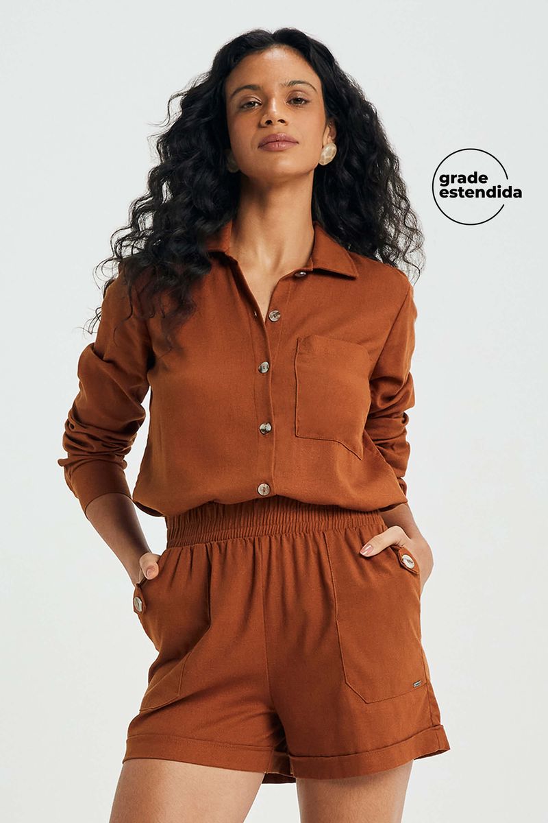 AdultoFeminino Plus SizeShorts Plus SizeShort Feminino Linho Com Bolsos Marialícia Marrom