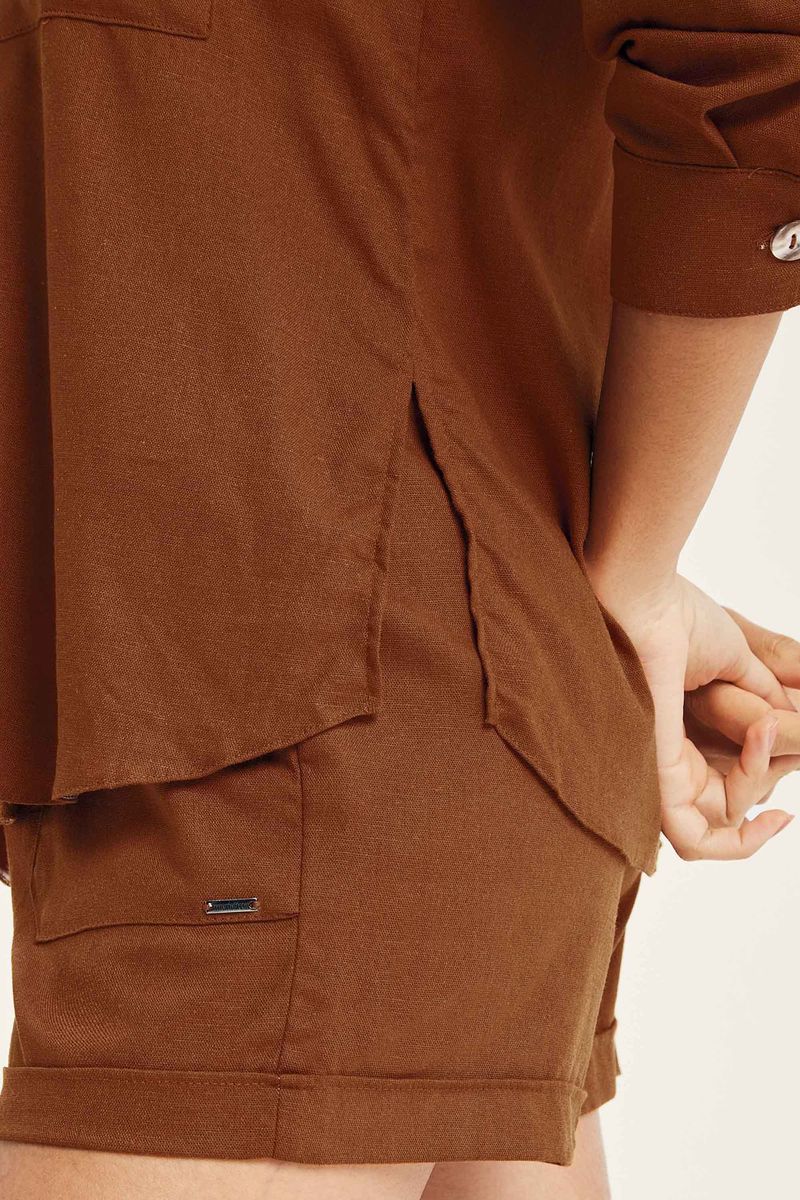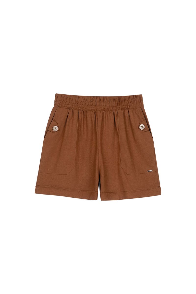Short Feminino Linho Com Bolsos Marialícia Marrom REF: 184090-8045
