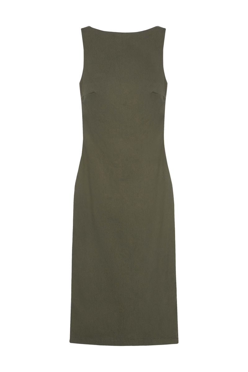 Vestido Midi Feminino Reto Com Zíper Marialícia Verde REF: 184105-5161