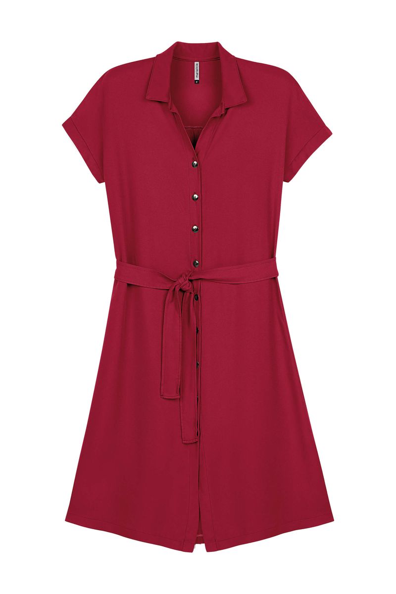 Vestido Feminino Midi Chemise Com Faixa Marialícia Vermelho REF: 184110-4547