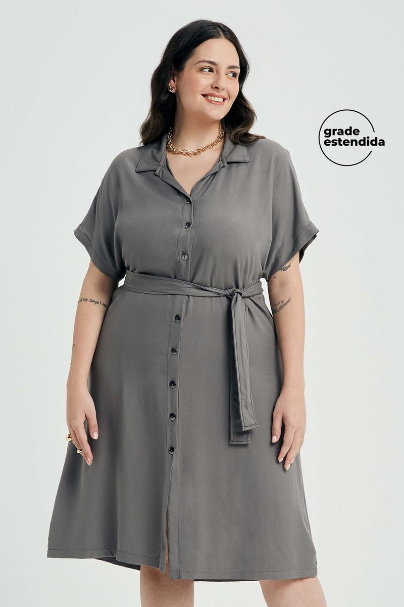Vestido Feminino Midi Chemise Com Faixa Marialícia Cinza REF: 184110-7045