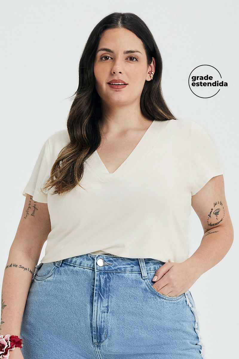 AdultoFemininoBlusas FemininoBlusa Feminina Regular Decote V Marialícia Bege