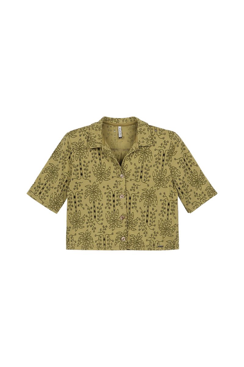 Camisa Feminina Tropical Devorê Marialícia Verde REF: 184119-5649