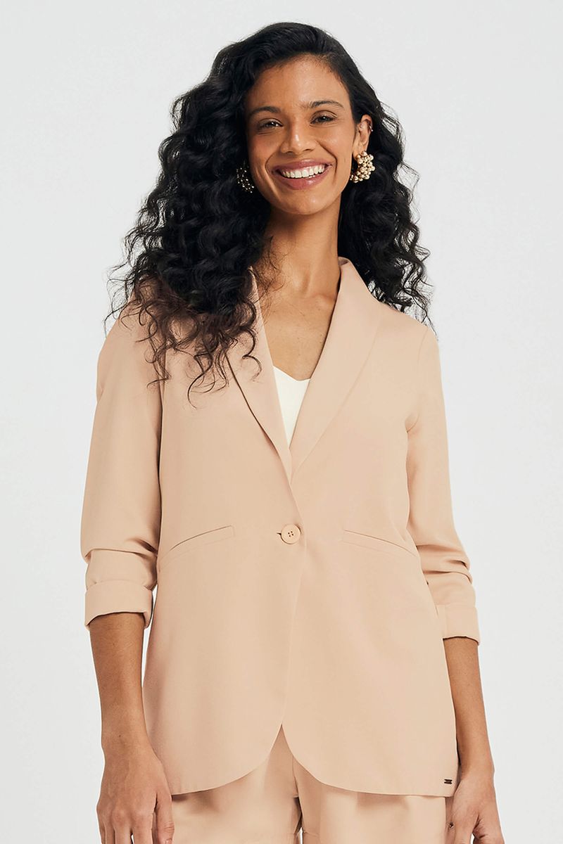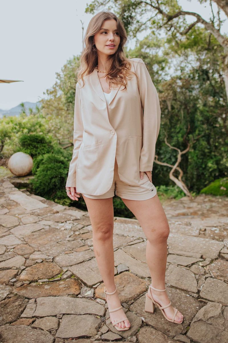 AdultoFemininoCasacos e Jaquetas FemininoBlazer Feminino Alongado Alfaiataria Marialícia Bege