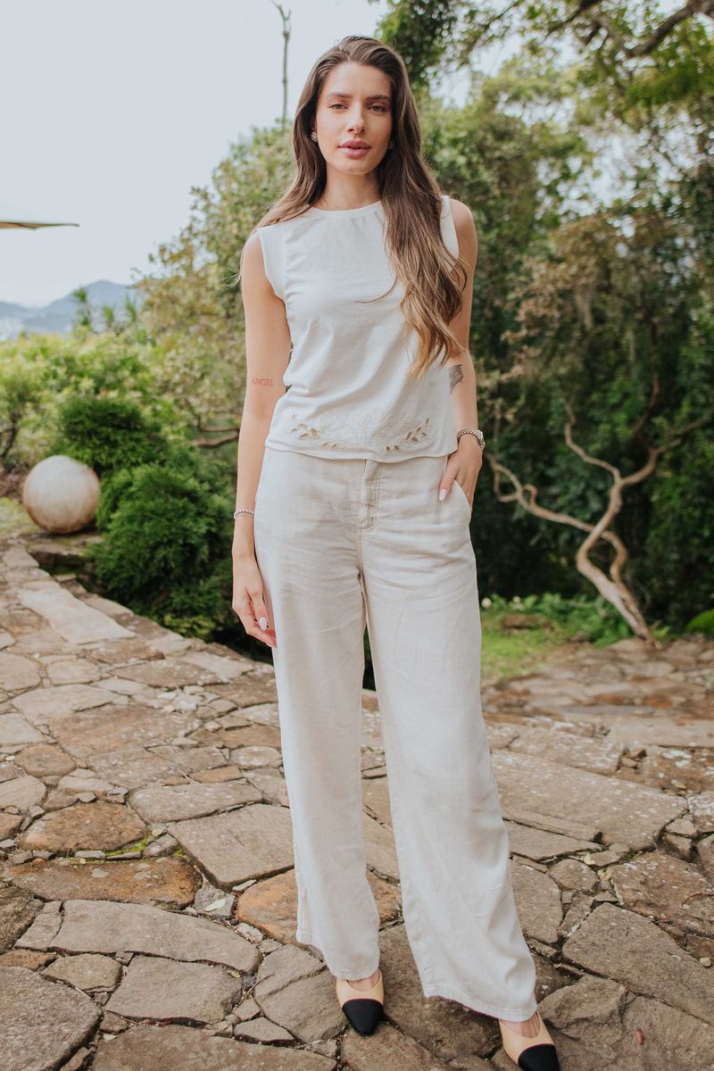 AdultoFemininoCalças FemininoCalça Feminina Pantalona Linho Marialícia Bege
