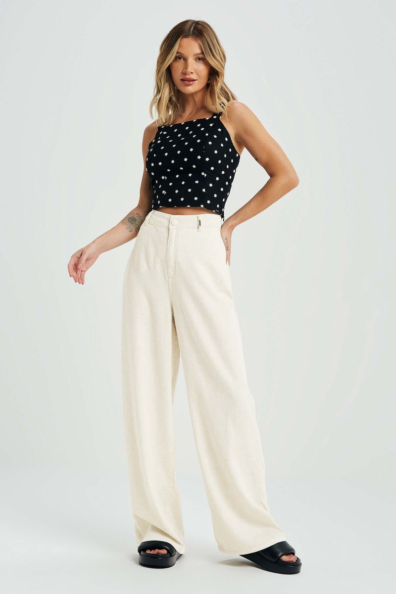 Calça Feminina Pantalona Linho Marialícia Bege REF: 184122-2037