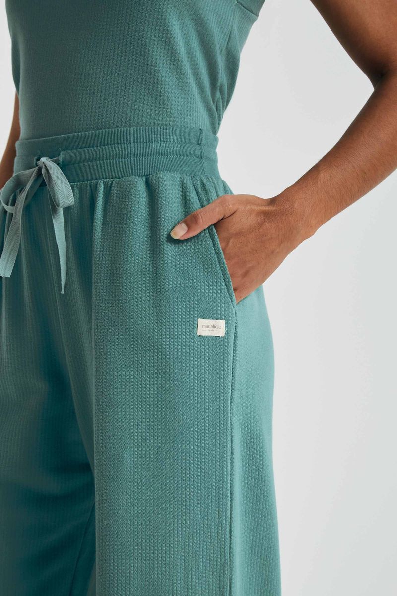 Calça Feminina Wide Leg Moletom Comfy Marialícia Verde REF: 184140-5141