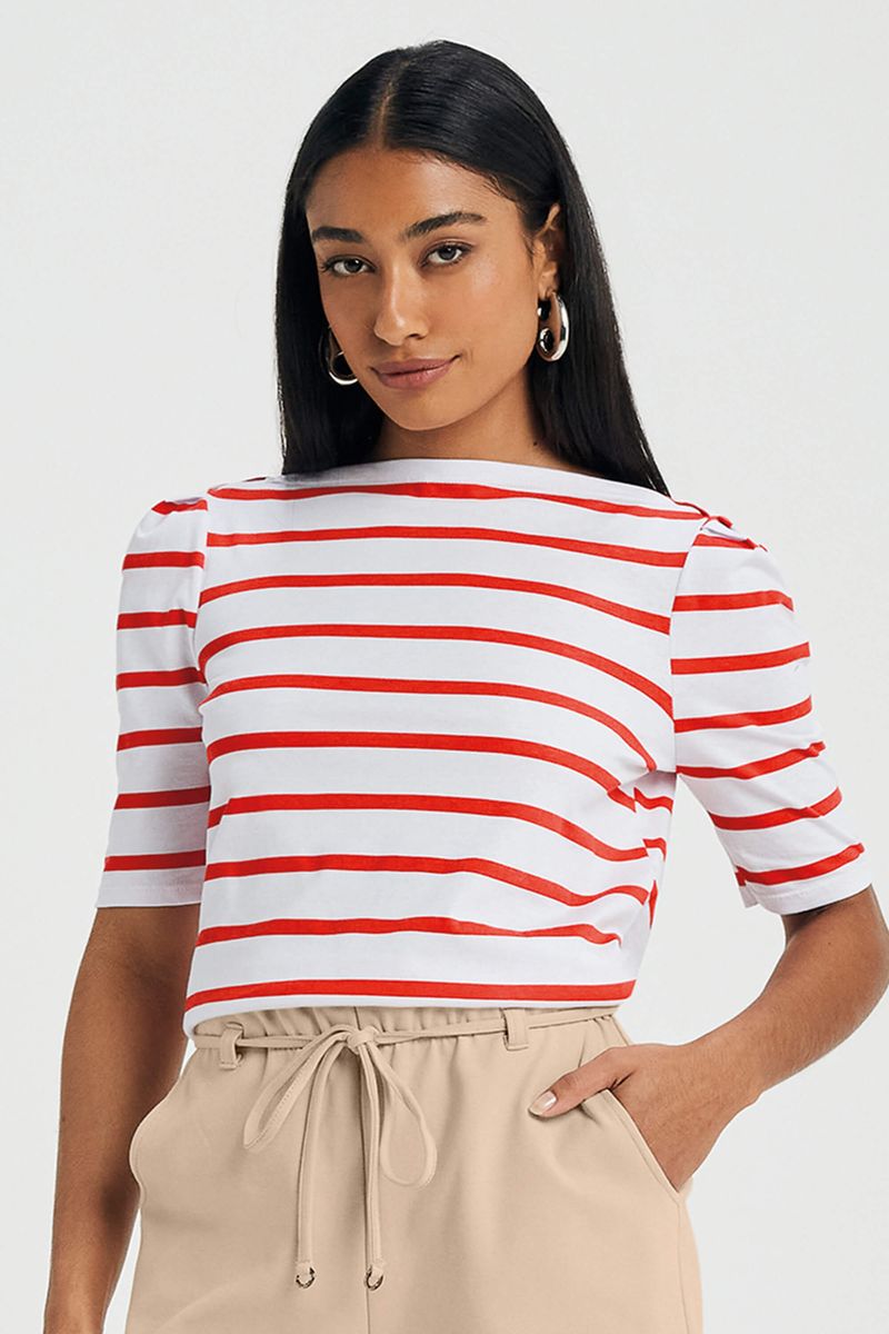 AdultoFemininoBlusas FemininoBlusa Feminina Meia Malha Listrada Marialícia Vermelho