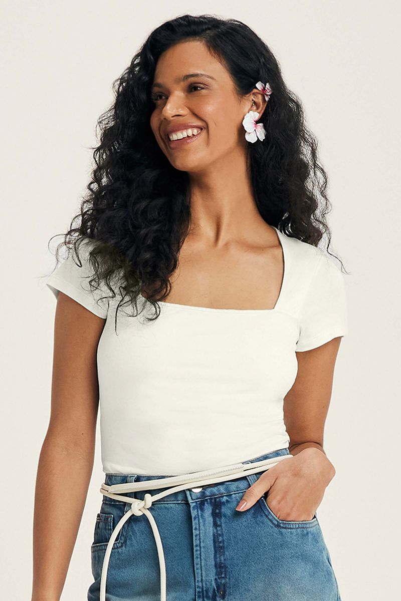 AdultoFemininoBlusas FemininoBlusa Feminina Decote Quadrado Marialícia Bege